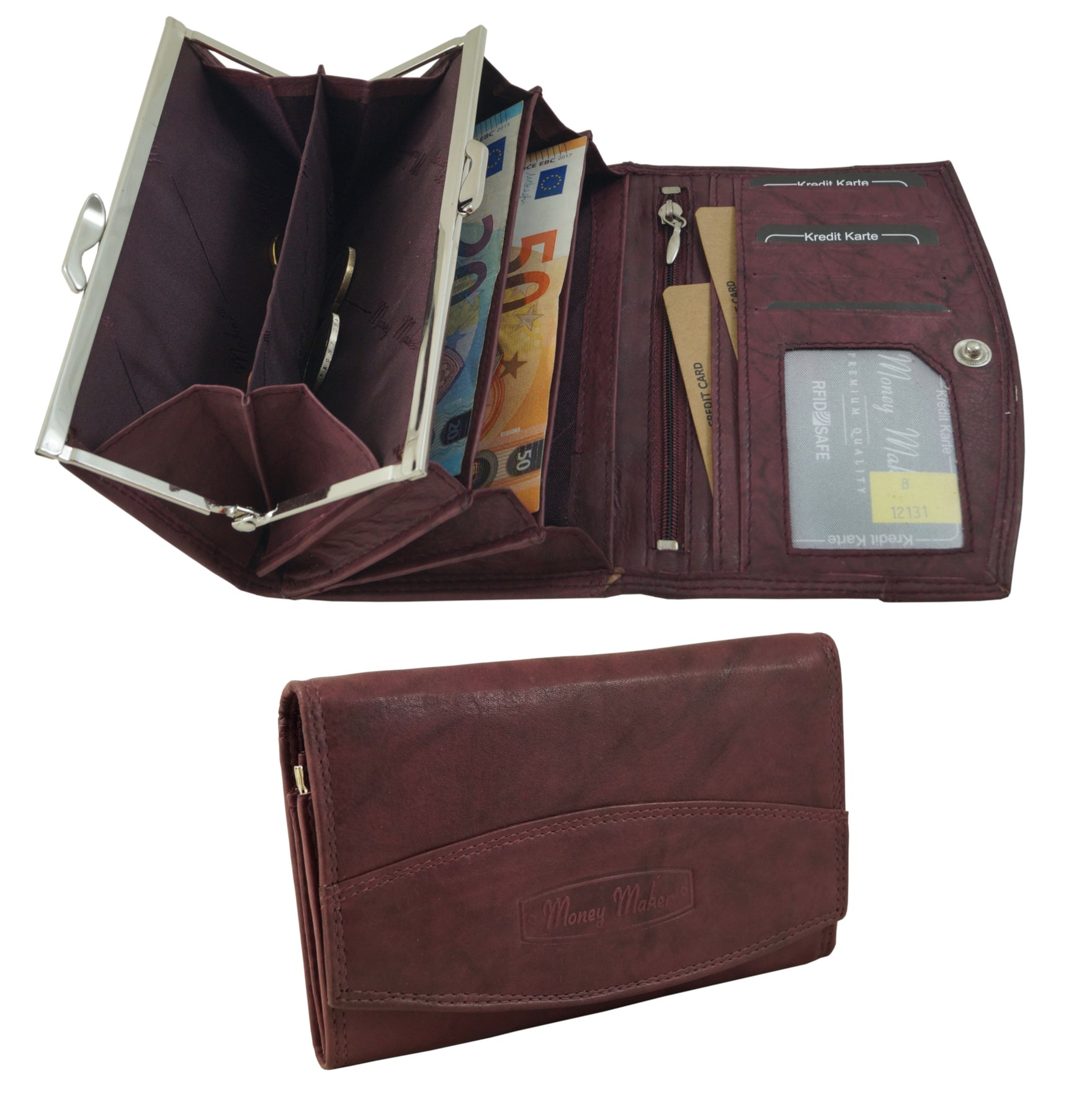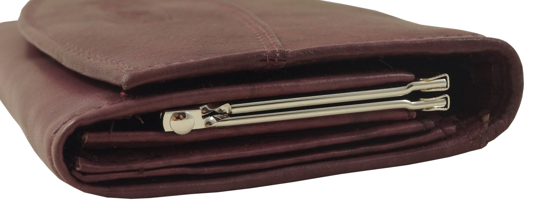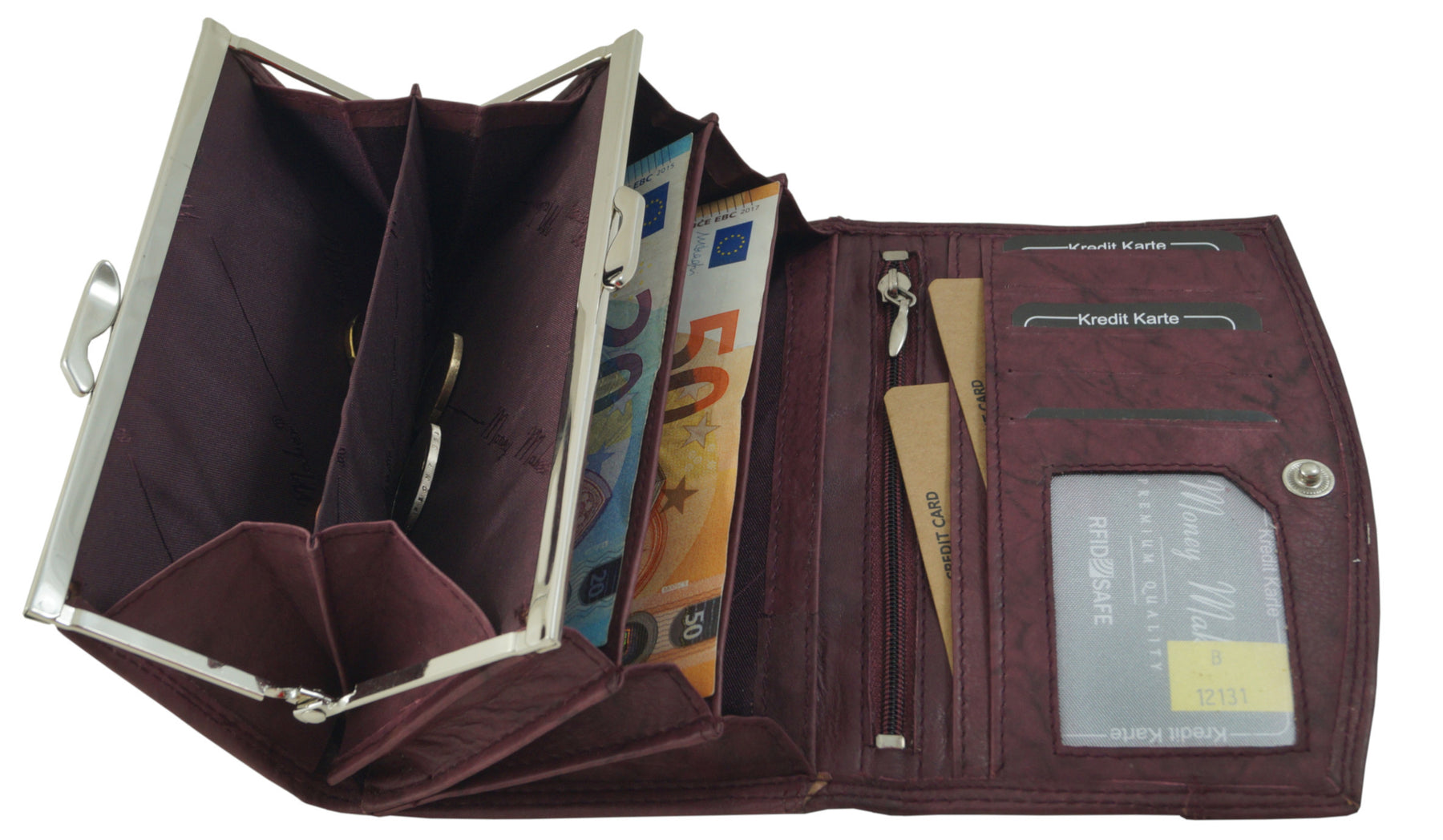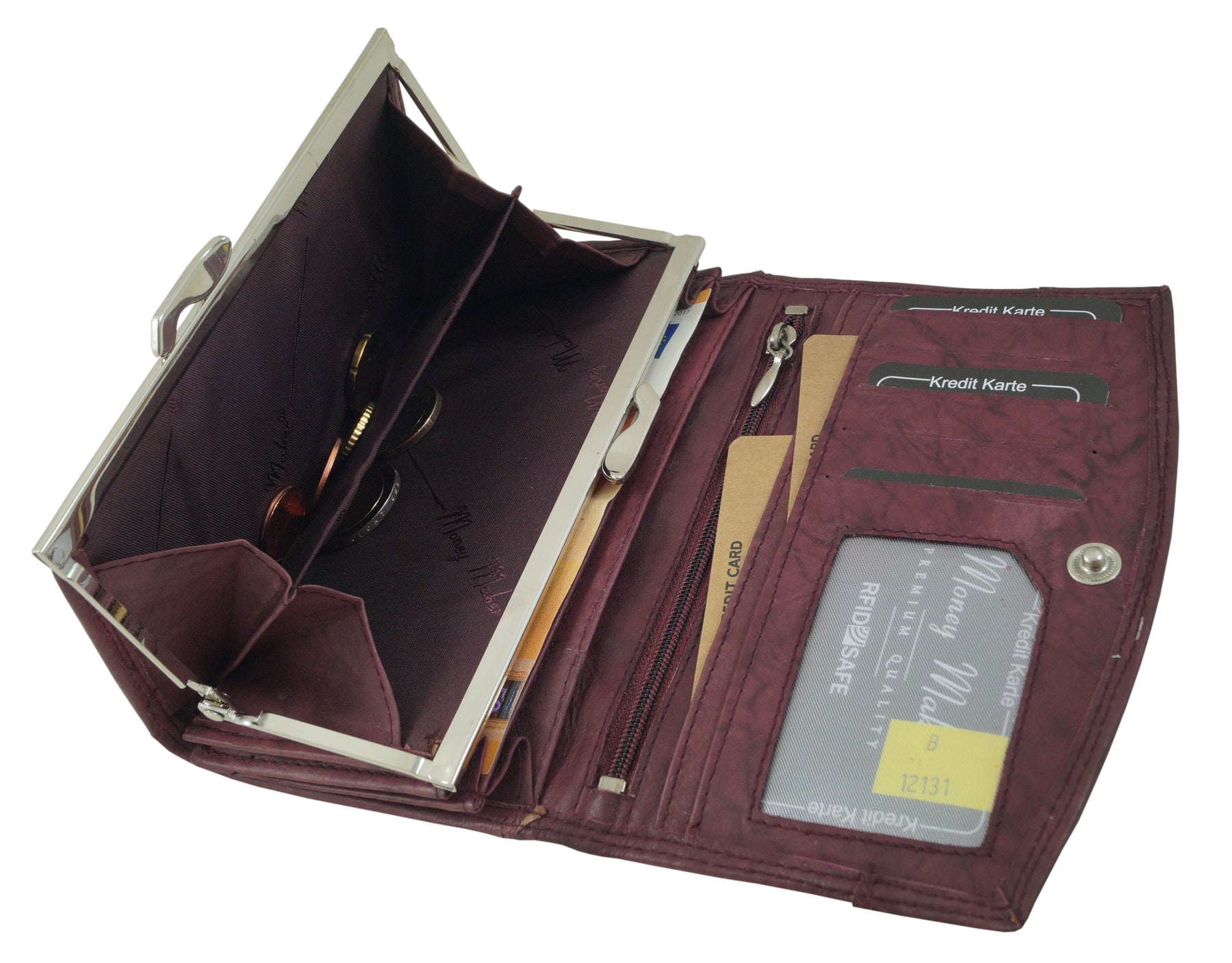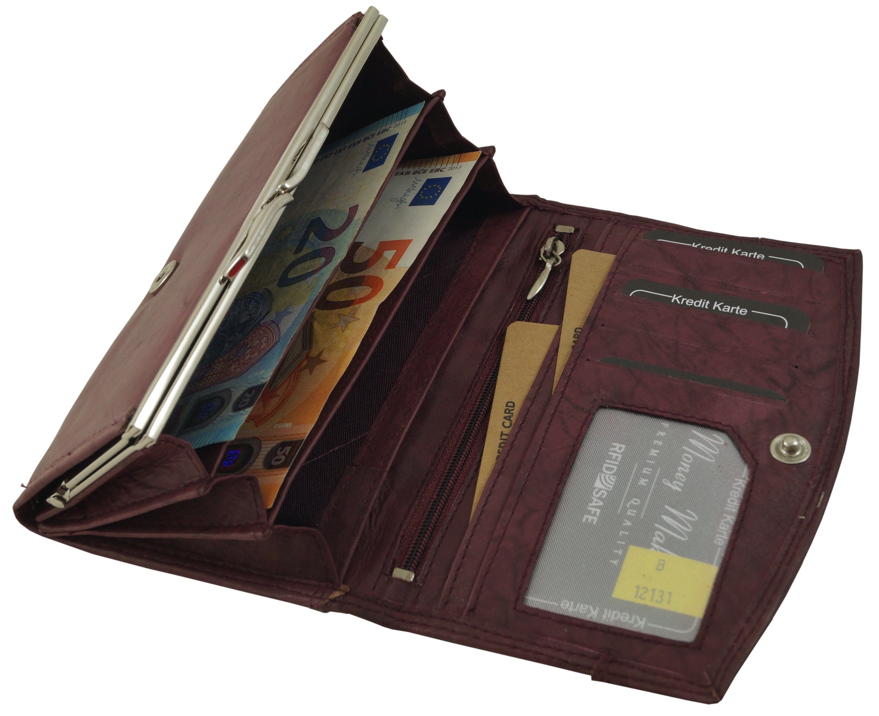klassische Damengeldbörse mit Clipverschluss-Münzfach, Rindsleder mit RFID-safe
