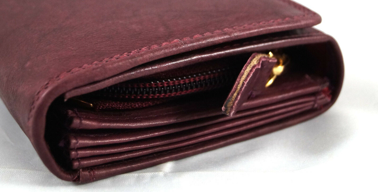 Verschlossen wird die Geldbörse mit einem Druckknopf.