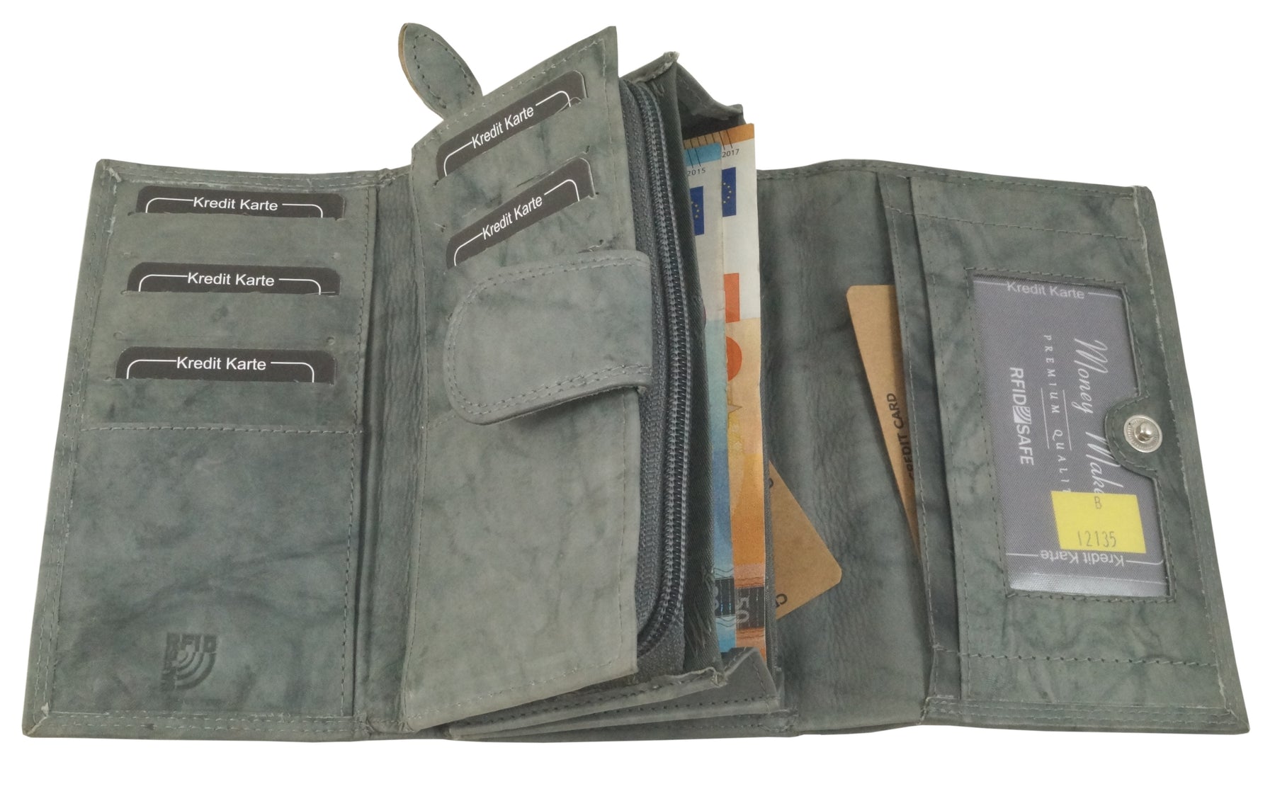 Diese Damen-Geldbörse der Marke Money Maker besticht durch ihr besonders geschmeidiges Rindleder und den praktischen Aufbau. Viele Karten- und Einsteckfächer bieten ausreichend Platz für alles Nötige, durch die intelligente Faltung hat man alles gleich griffbereit. Die sensiblen Daten und das Guthaben der EC- bzw. Kreditkarten sind für Unbefugte durch den integrierten RFID/NFC-Blocker nicht auslesbar.