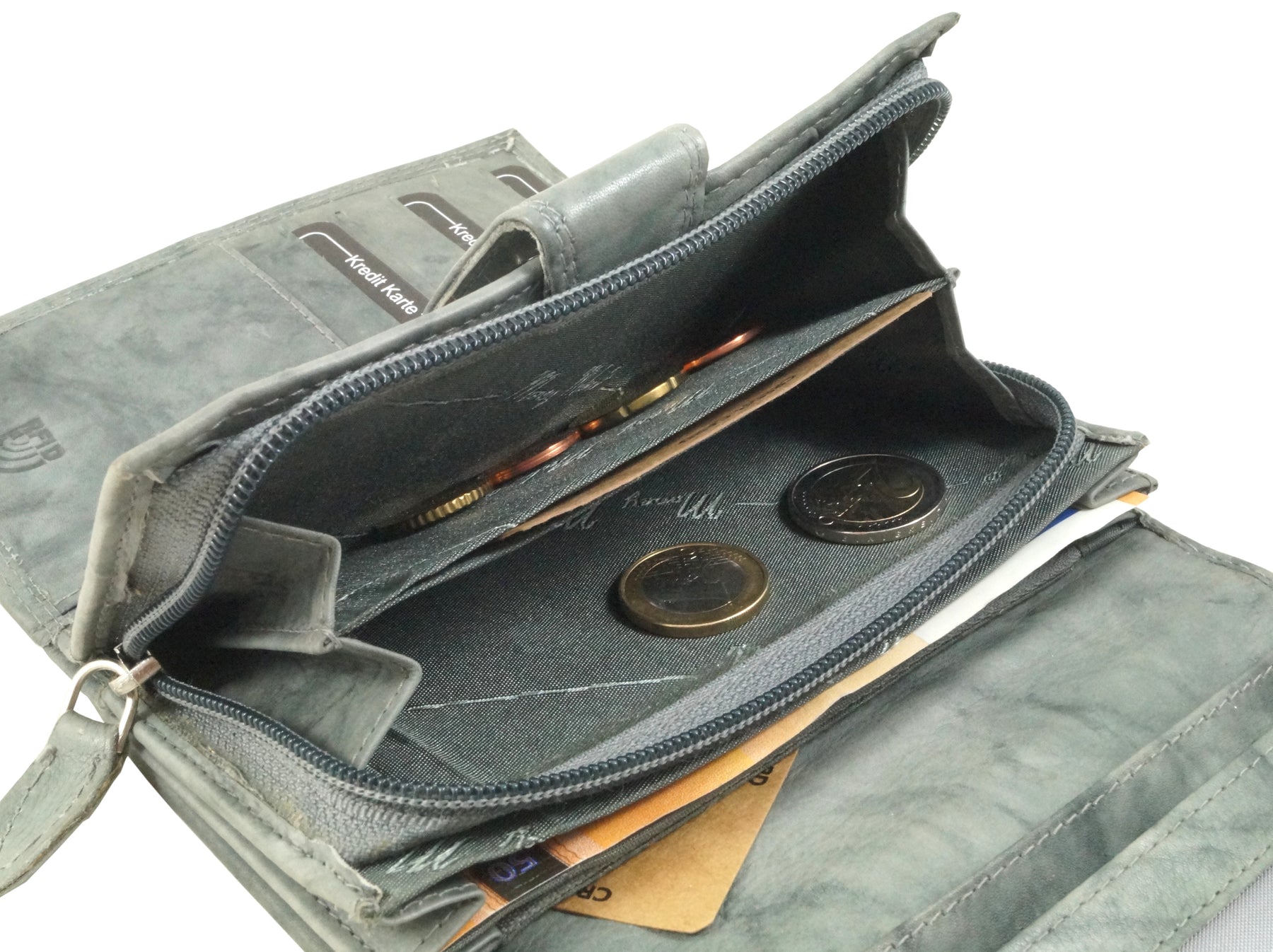 - 2-geteiltes Münzfach mit umlaufendem Reißverschluss