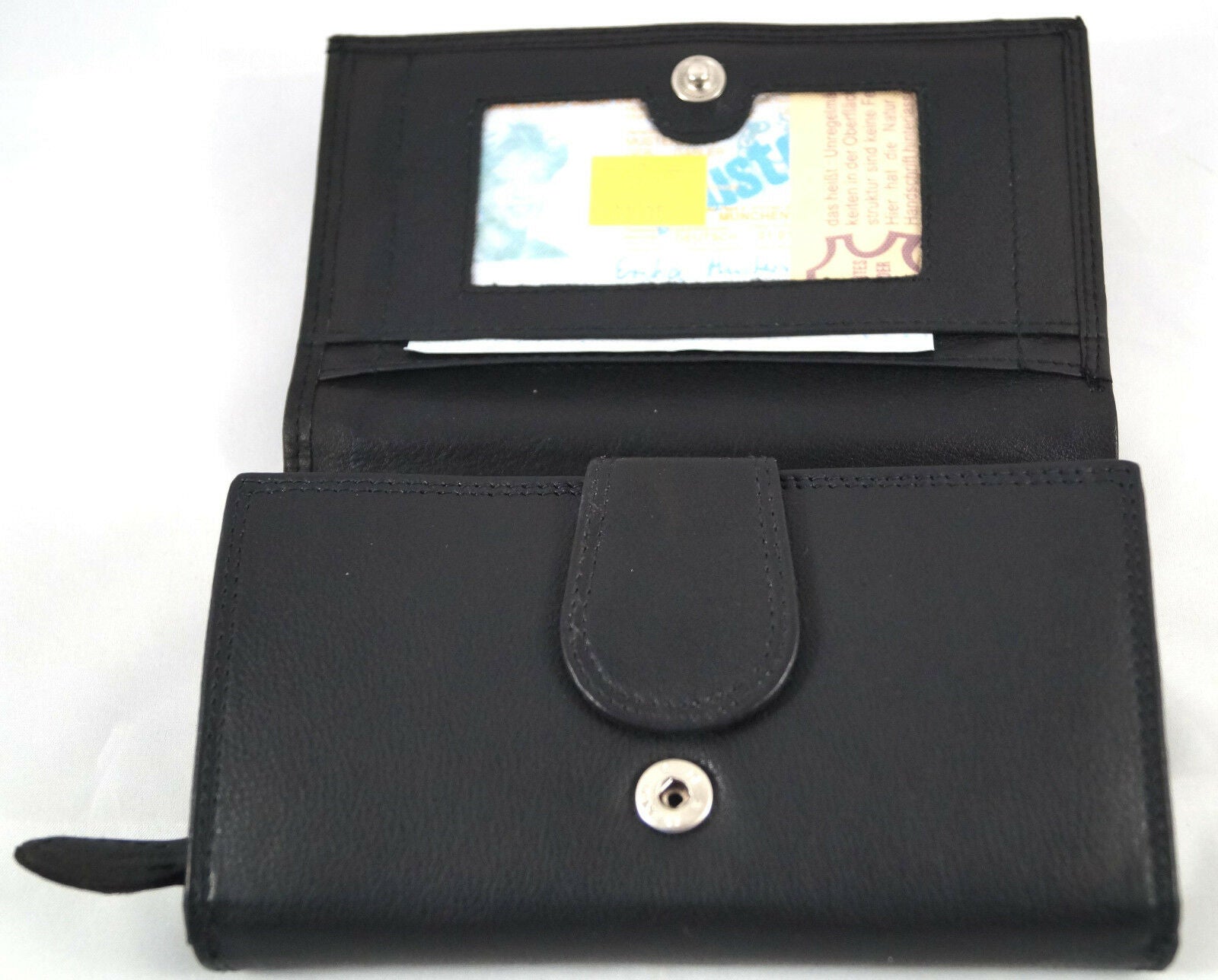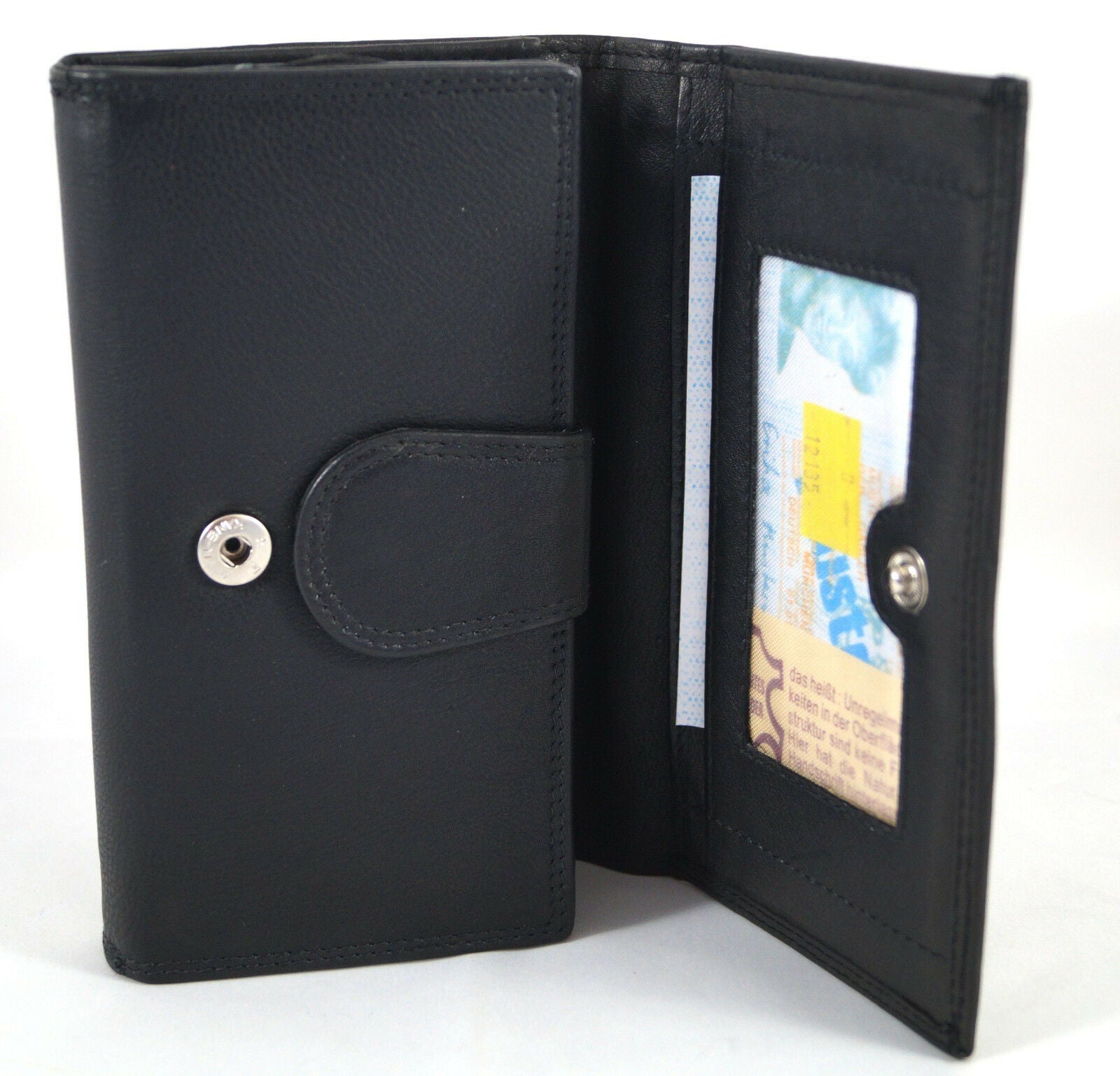Verschlossen wird die Geldbörse mit einem Druckknopf.