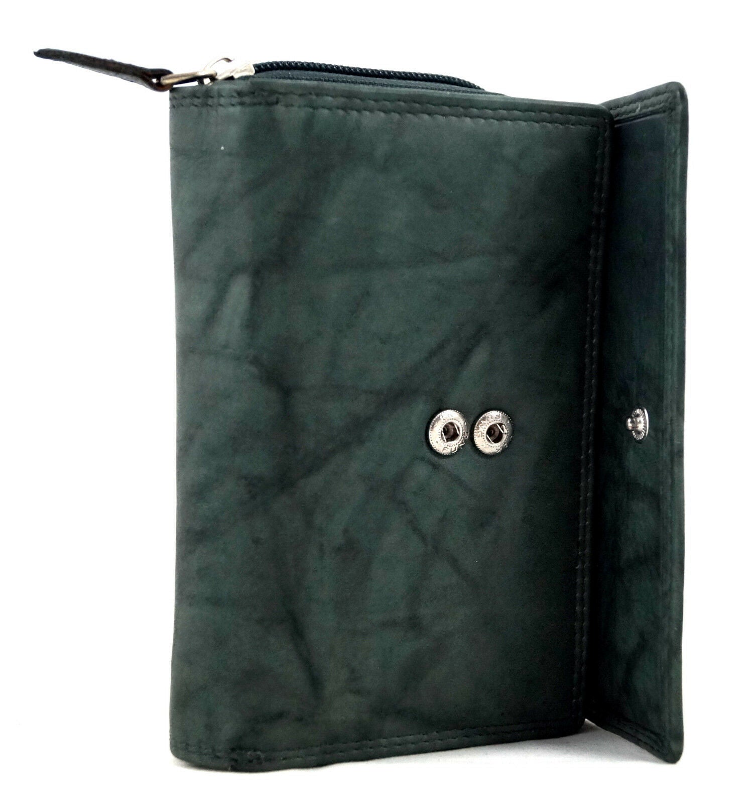 Verschlossen wird die Geldbörse mit einem Druckknopf.