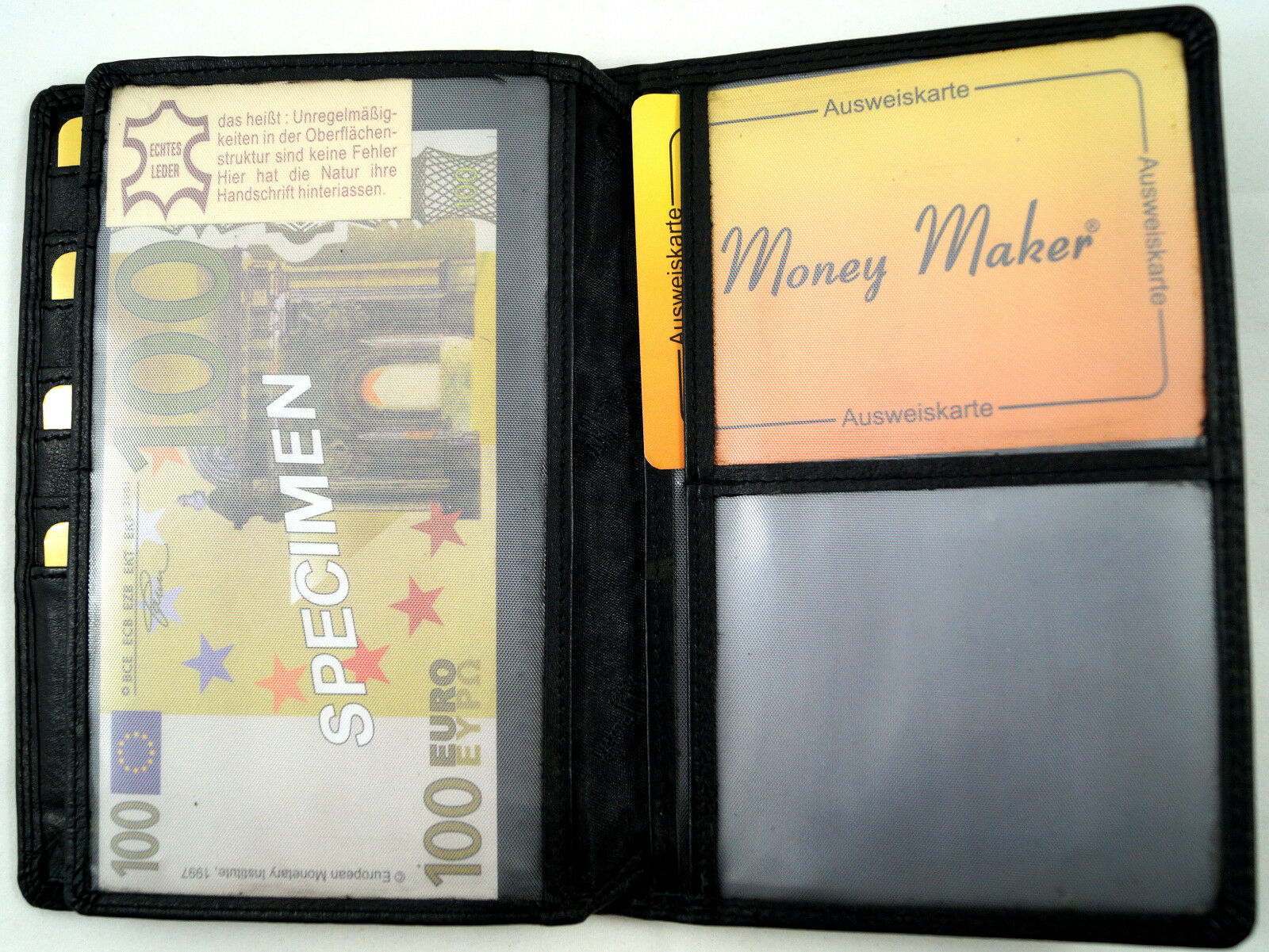 Diese praktische Brieftasche in bewährtem Aufbau bietet viel Platz für alle notwendigen Dokumente und Karten einschließlich des Fahrzeugscheins, des Impfpasses, des Schwerbehindertenausweises oder Jagd- sowie Angelscheinen. Sie empfiehlt sich mit dem Reißverschlussfach auch als Reisebörse für Banknoten. Durch den integrierten RFID-Ausleseschutz sind ihre Daten sicher vor Ausspähung geschützt und ihre Kredit- sowie Bankkarten können nicht unbefugt belastet werden. Das angenehm weich gegerbte Rindleder liegt dabei schön geschmeidig in der Hand. Der flache Aufbau lässt diese Brieftasche auch leicht in der Innentasche des Jackets oder dem Hosenbund verschwinden, wenn sie unauffällig und sicher getragen werden soll.
