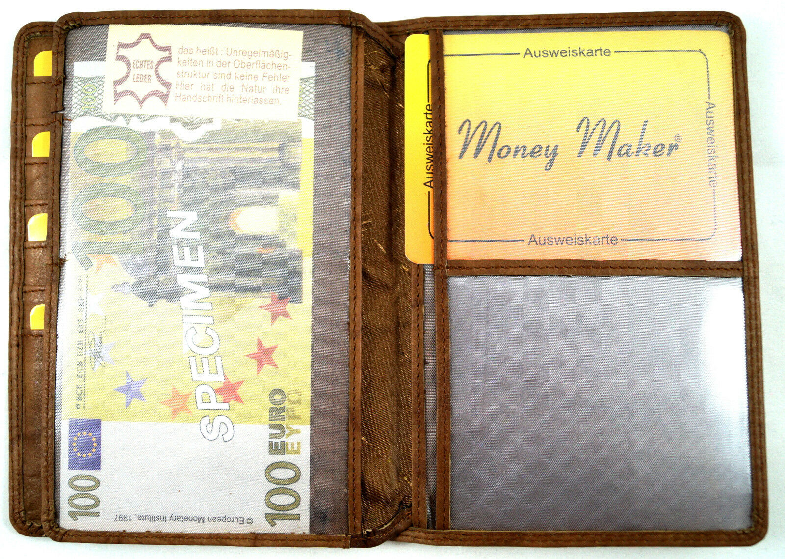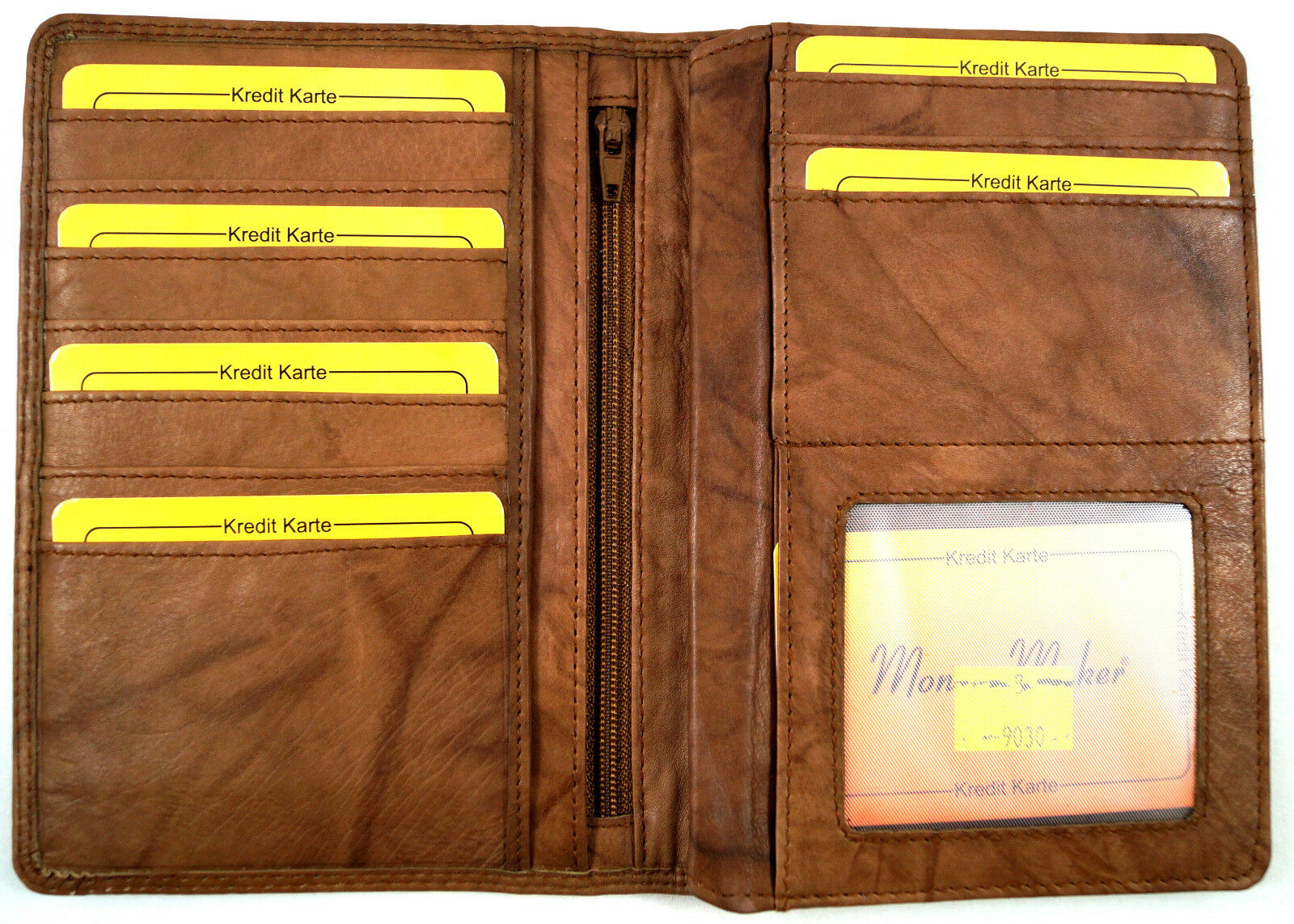 Diese praktische Brieftasche in bewährtem Aufbau bietet viel Platz für alle notwendigen Dokumente und Karten einschließlich des Fahrzeugscheins, des Impfpasses, des Schwerbehindertenausweises oder Jagd- sowie Angelscheinen. Sie empfiehlt sich mit dem Reißverschlussfach auch als Reisebörse für Banknoten. Durch den integrierten RFID-Ausleseschutz sind ihre Daten sicher vor Ausspähung geschützt und ihre Kredit- sowie Bankkarten können nicht unbefugt belastet werden. Das angenehm weich gegerbte Rindleder liegt dabei schön geschmeidig in der Hand. Der flache Aufbau lässt diese Brieftasche auch leicht in der Innentasche des Jackets oder dem Hosenbund verschwinden, wenn sie unauffällig und sicher getragen werden soll.