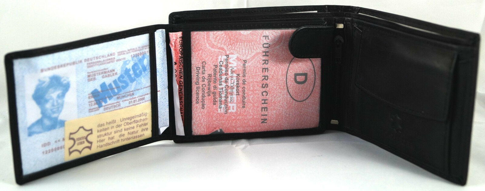 Diese klassische Herrengeldbörse aus besonders geschmeidigem Echtleder ist der ideale Begleiter für jeden Tag.