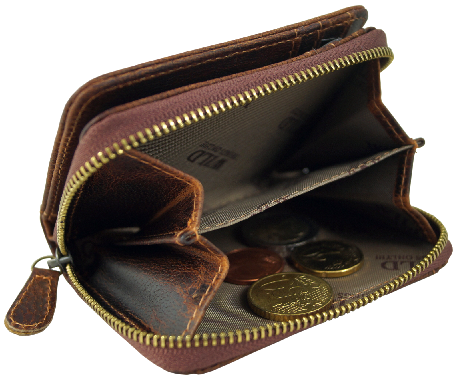 - großes 2-geteiltes Münzfach mit umlaufendem Metallreißverschluss