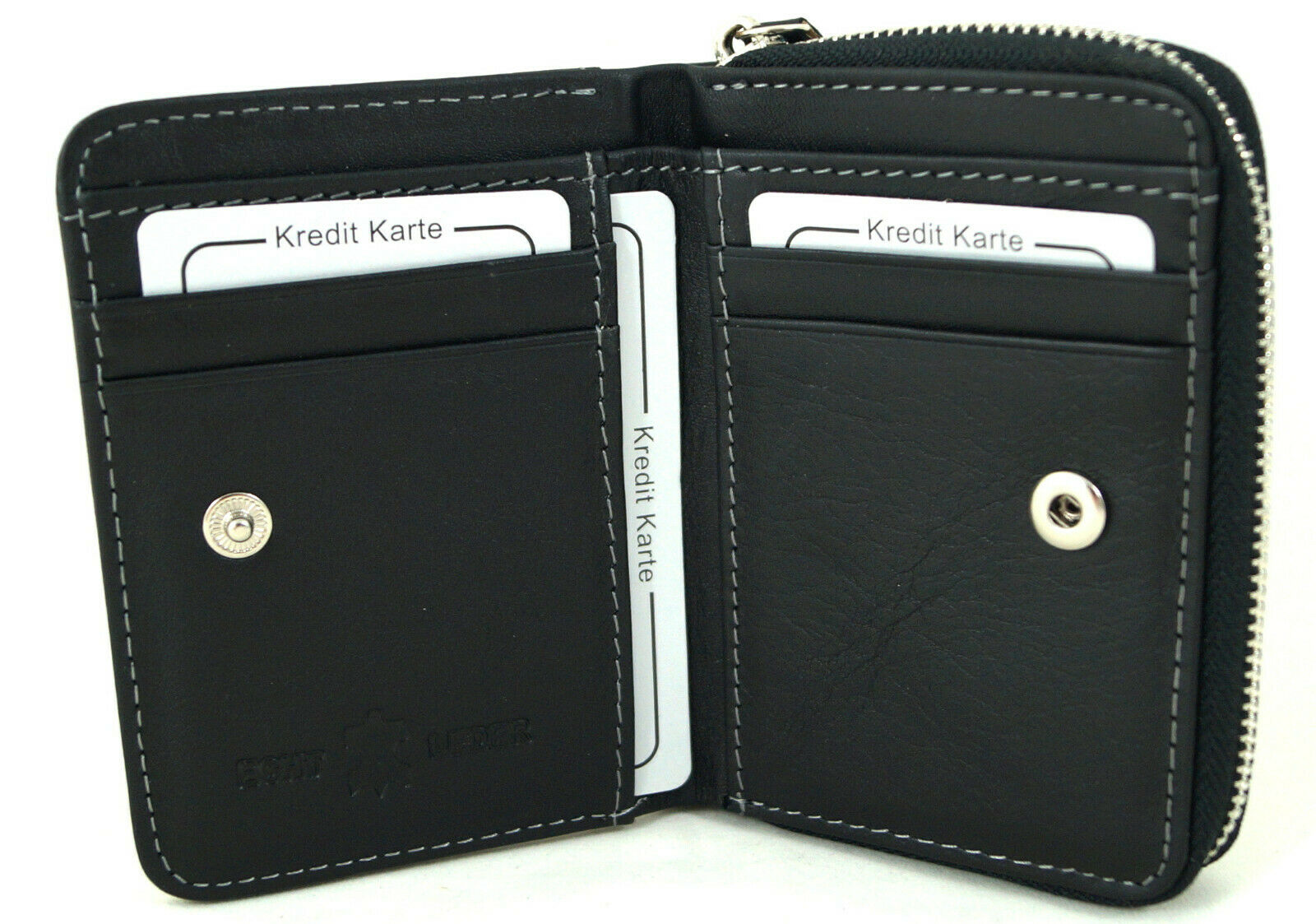 - großes 2-geteiltes Münzfach mit umlaufendem Metallreißverschluss
