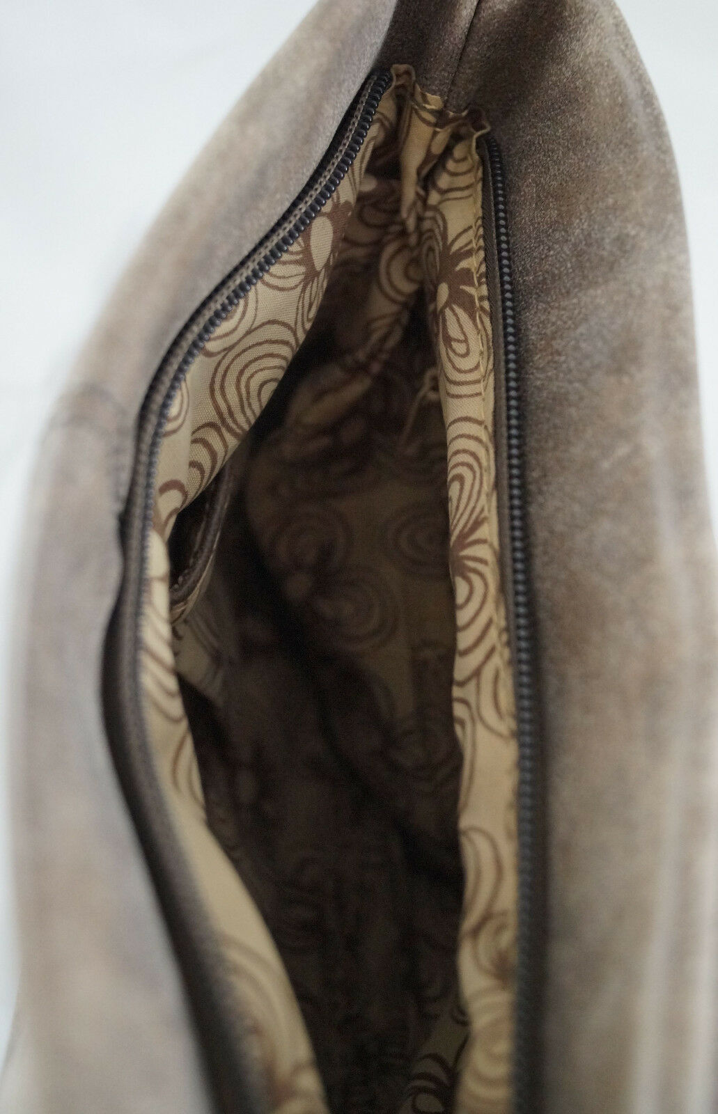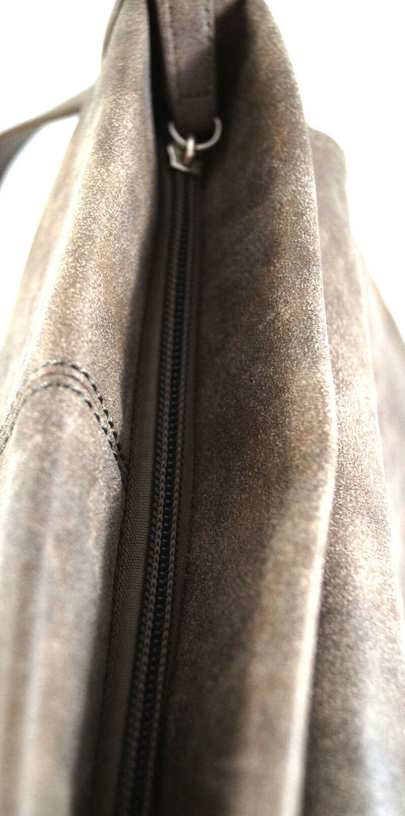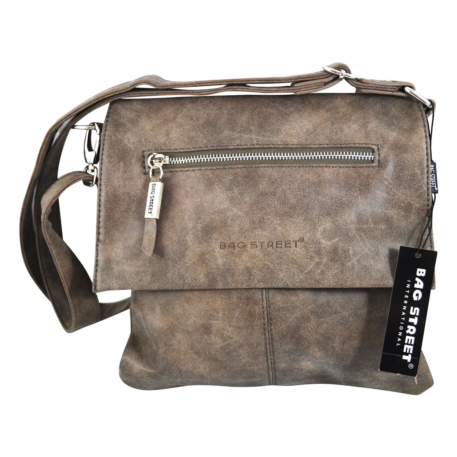 Diese besonders flache Tasche aus dem Hause Bag Street wird aus belastbarem und wasserabweisendem Kunstleder hergestellt, das durch seine gebürstete Oberfläche den Eindruck von Wildleder erweckt. Die solide Verarbeitung, das zeitlose Design und die praktischen Fächer machen diese Handtasche zu einem perfekten Begleiter für den täglichen Einsatz. Pfiffige Details wie die extra großen Griffstücke der Reißverschlüsse oder das farblich abgestimmte Innenfutter runden das Gesamtbild ab.