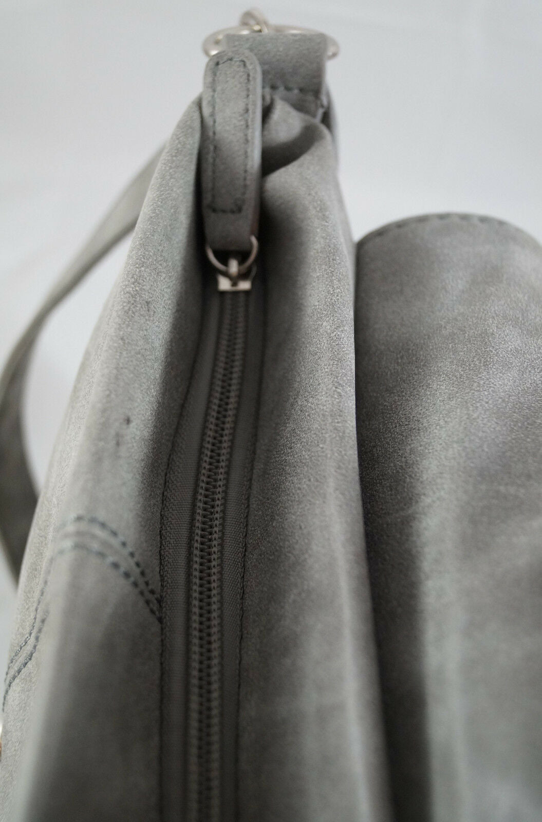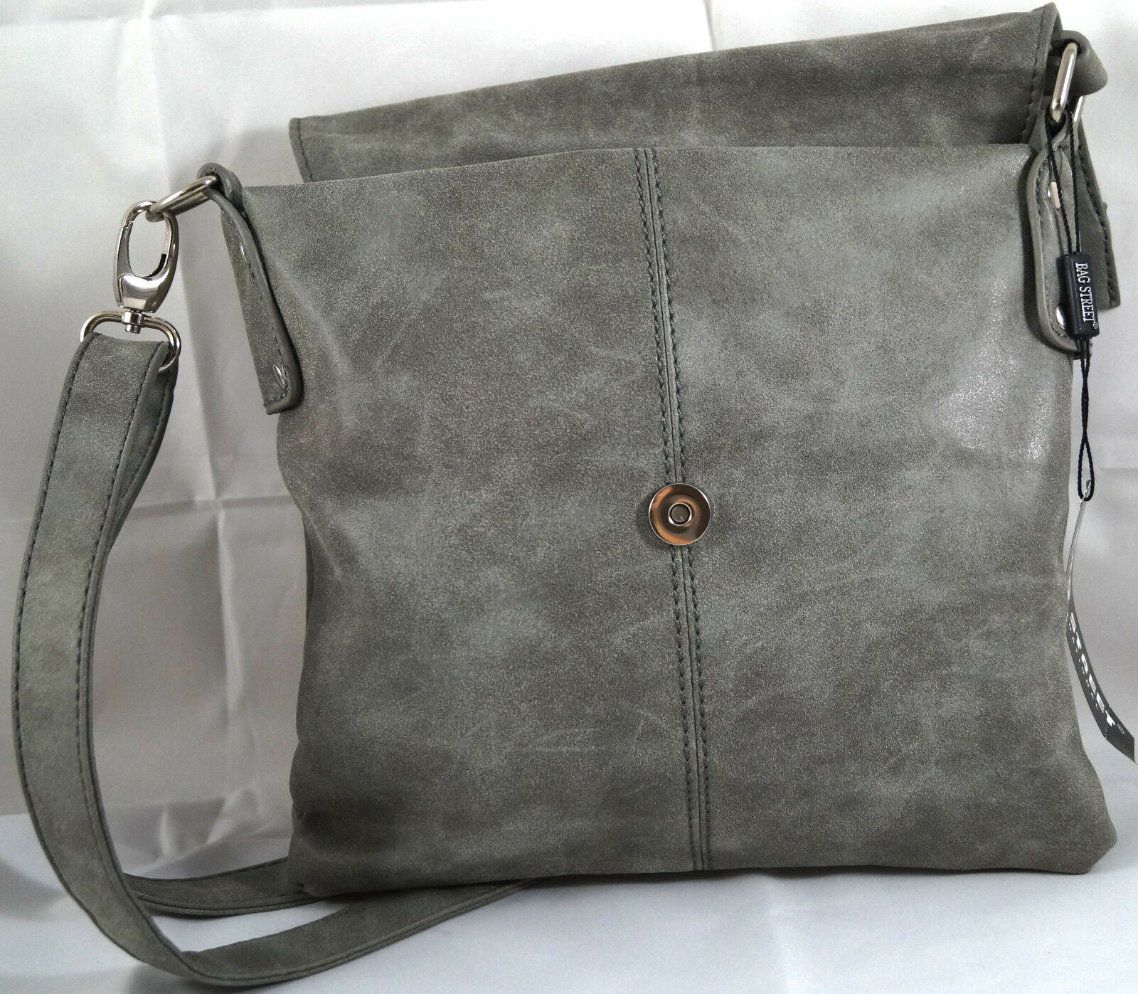 Diese besonders flache Tasche aus dem Hause Bag Street wird aus belastbarem und wasserabweisendem Kunstleder hergestellt, das durch seine gebürstete Oberfläche den Eindruck von Wildleder erweckt. Die solide Verarbeitung, das zeitlose Design und die praktischen Fächer machen diese Handtasche zu einem perfekten Begleiter für den täglichen Einsatz. Pfiffige Details wie die extra großen Griffstücke der Reißverschlüsse oder das farblich abgestimmte Innenfutter runden das Gesamtbild ab.