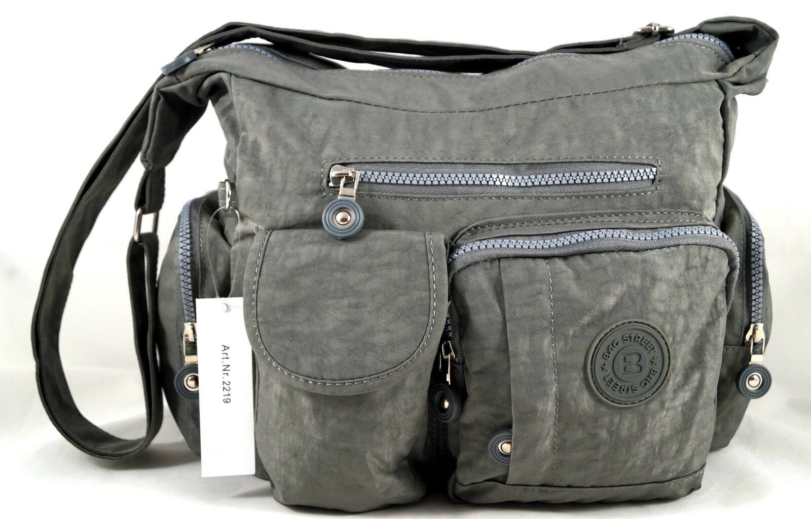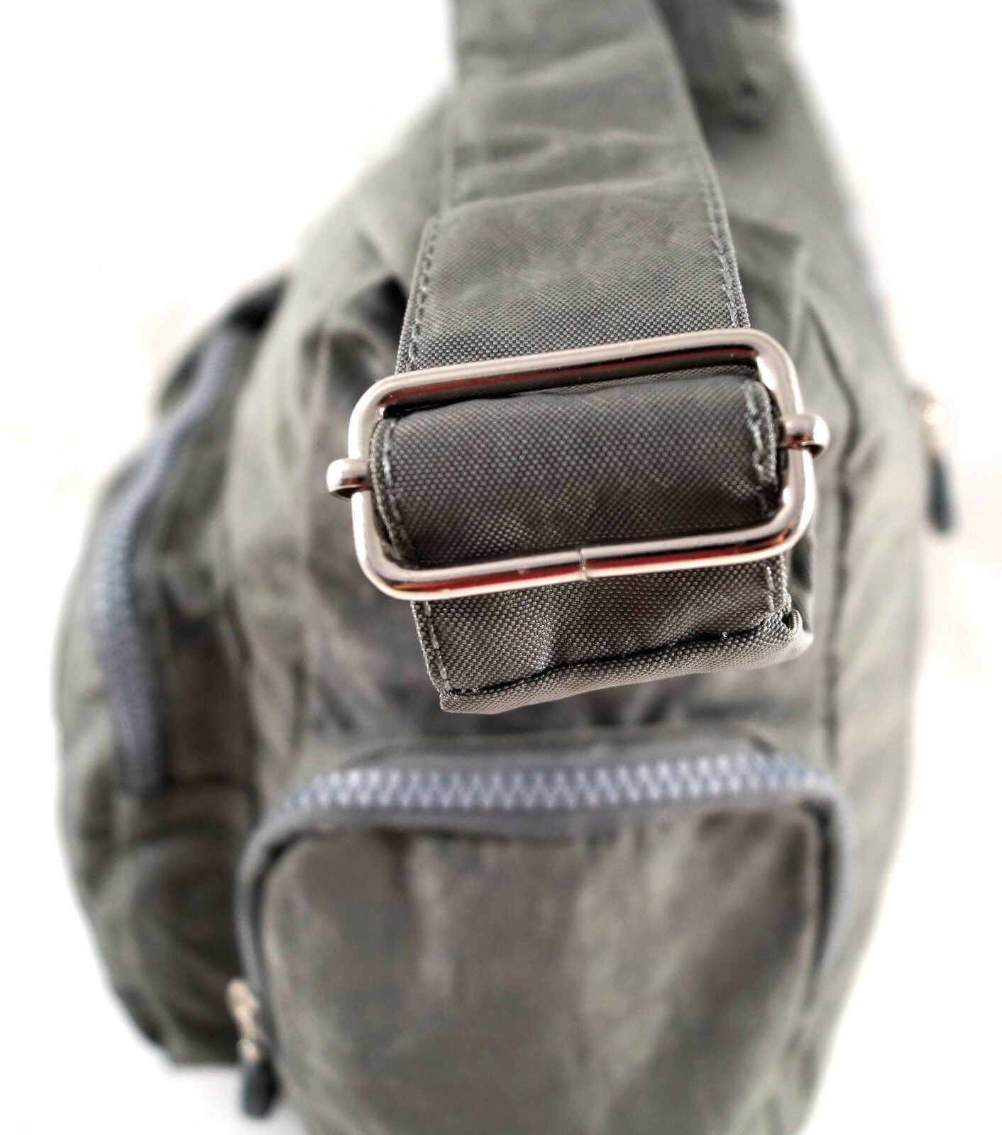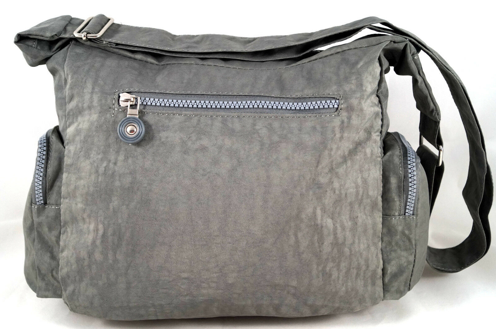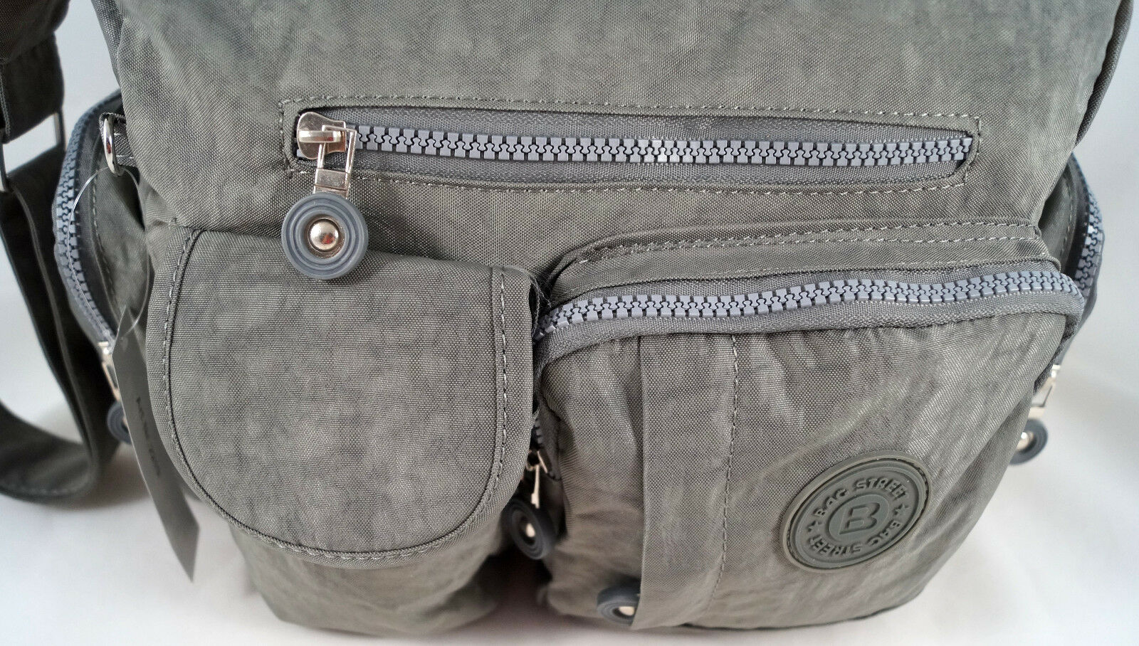 sportliche, leichte Umhängetasche aus wasserabweisendem Nylon mit vielen Außenfächern