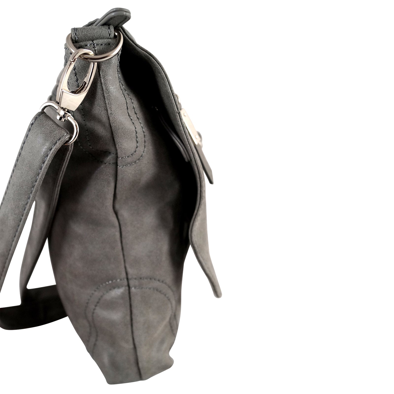 flache Umhängetasche aus robustem Kunstleder mit großer Deckelklappe