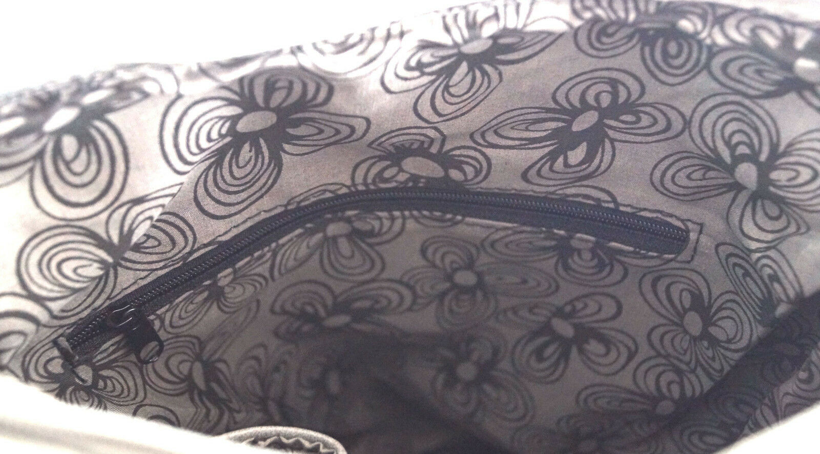 - 1 kleines Reißverschlussfach vorne mit aufgesetztem kleinem Reißverschlussfach