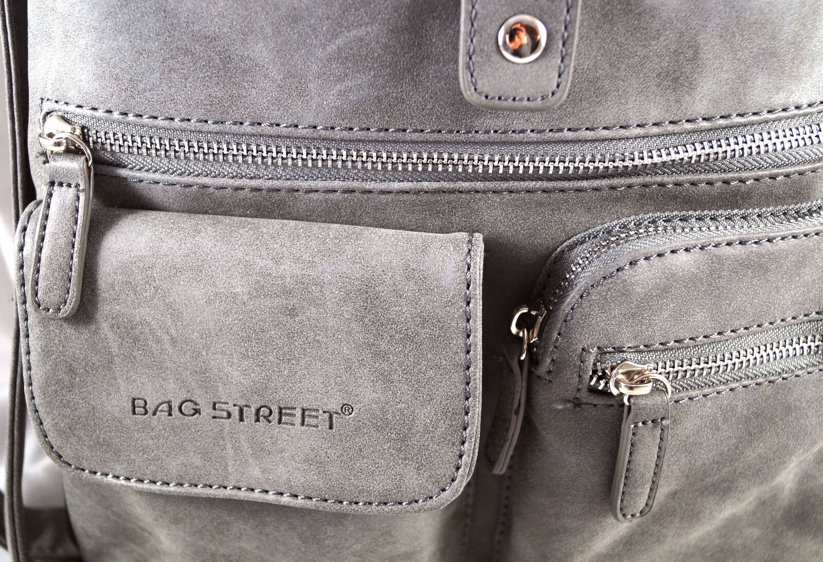 Diese peppige Tasche aus dem Hause Bag Street wird aus belastbarem und wasserabweisendem Kunstleder hergestellt, das durch seine gebürstete Oberfläche den Eindruck von Wildleder erweckt. Die solide Verarbeitung, das sportliche Design und die vielen Fächer machen sie zu einem perfekten Begleiter für den täglichen Einsatz. Pfiffige Details wie die extra großen Griffstücke der Reißverschlüsse oder das farblich abgestimmte Innenfutter runden das Gesamtbild ab.