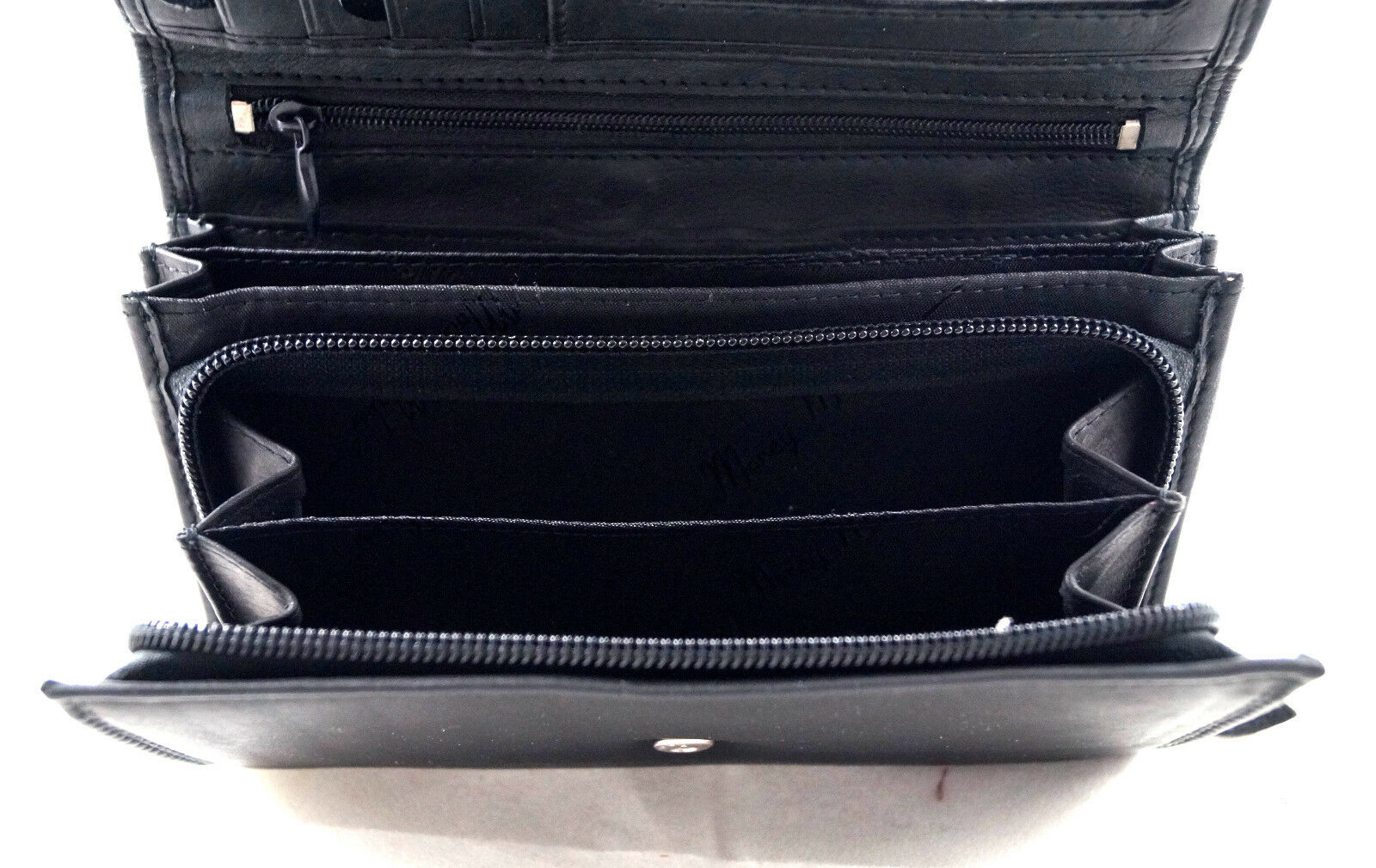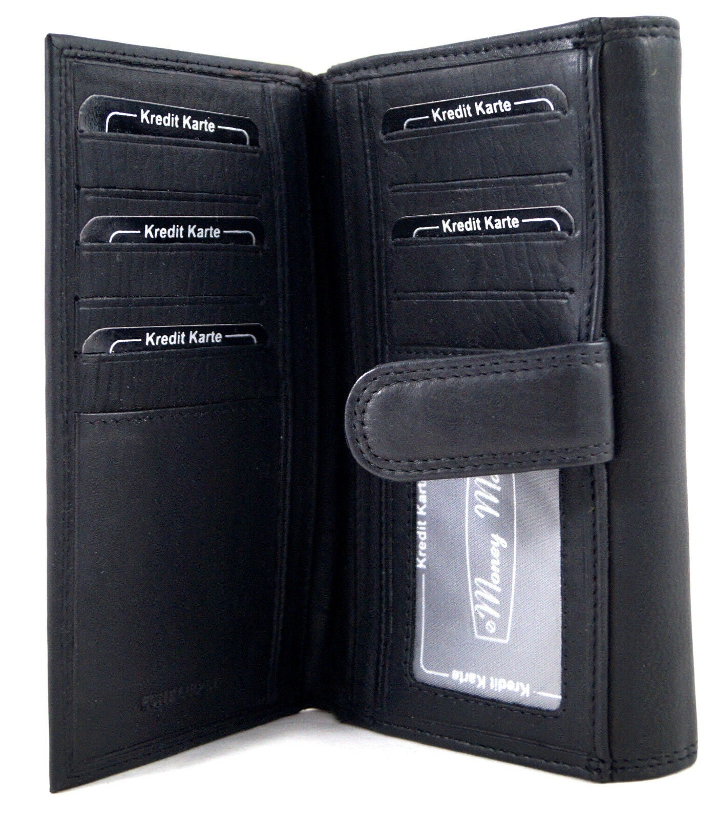 Diese große Damengeldbörse aus dem Hause Money Maker ist ein echtes Platzwunder, das nicht nur Bargeld sondern auch 16 Karten aufnimmt. Zusätzlich ist Platz für das Übliche an Belegen, Notizen und Fotos. Das besonders geschmeidig gegerbte Rindsleder liegt dabei gut in der Hand. Der integrierte RFID-/NFC-Blocker schützt ihre Daten vor Ausspähung und verhindert das kontaktlose Bezahlen durch Unbefugte! Der ideale Begleiter für jeden Tag!