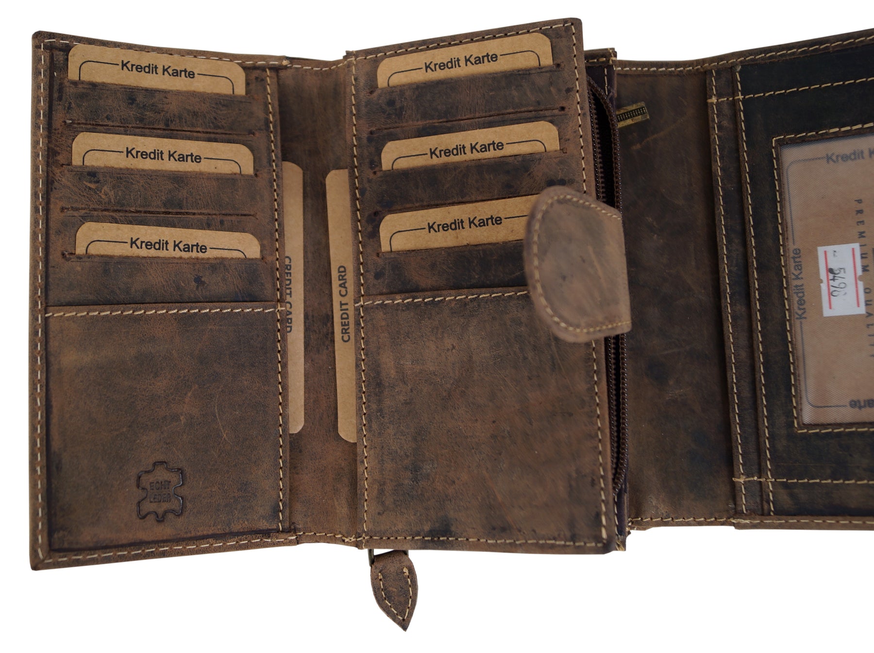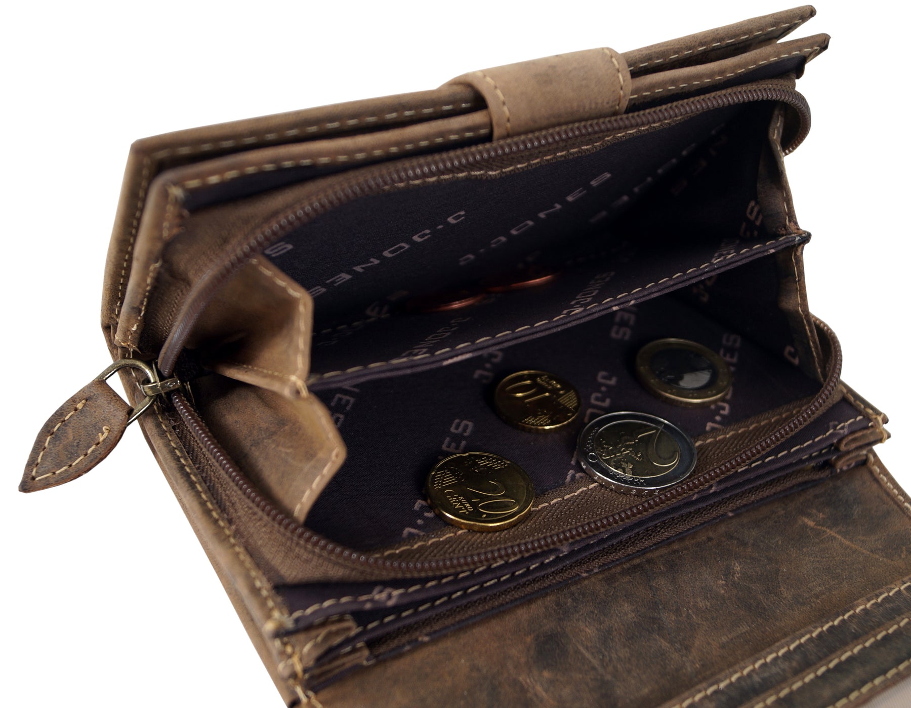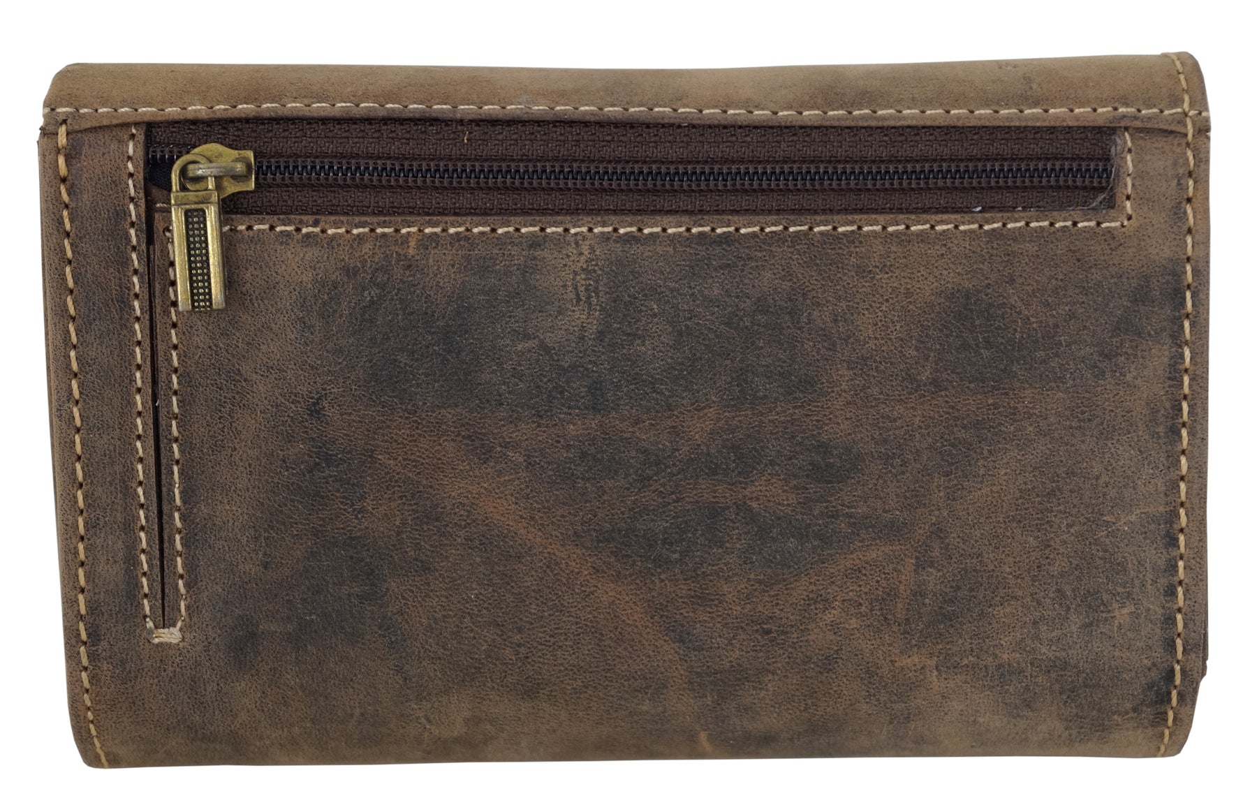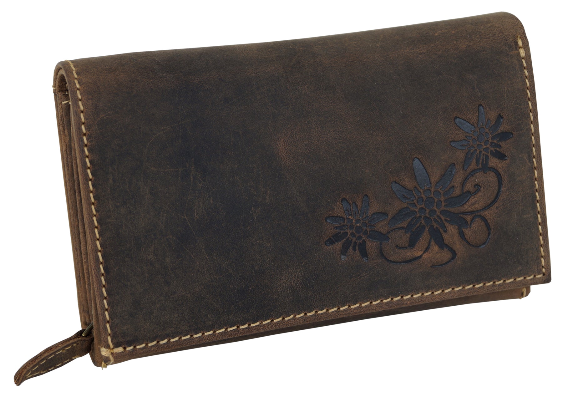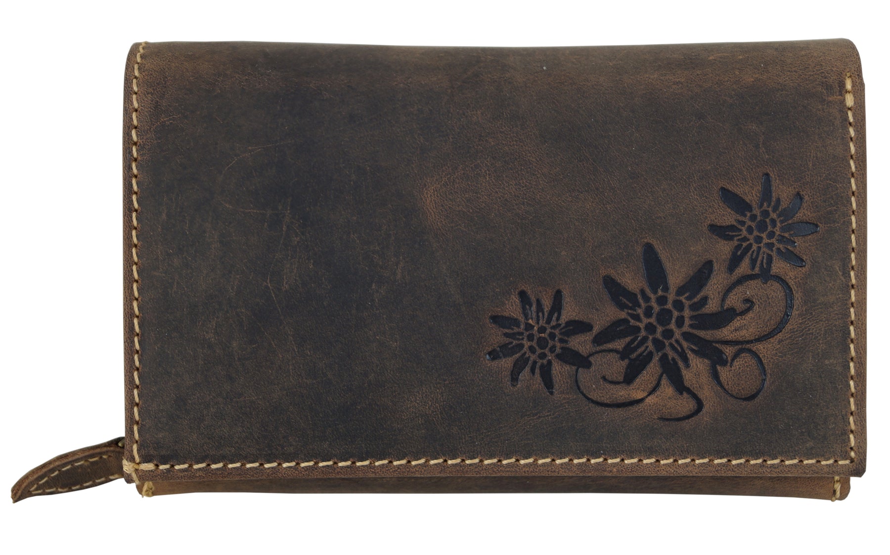 schicke Damengeldbörse aus naturrauhem Hunterleder mit Edelweißprägung